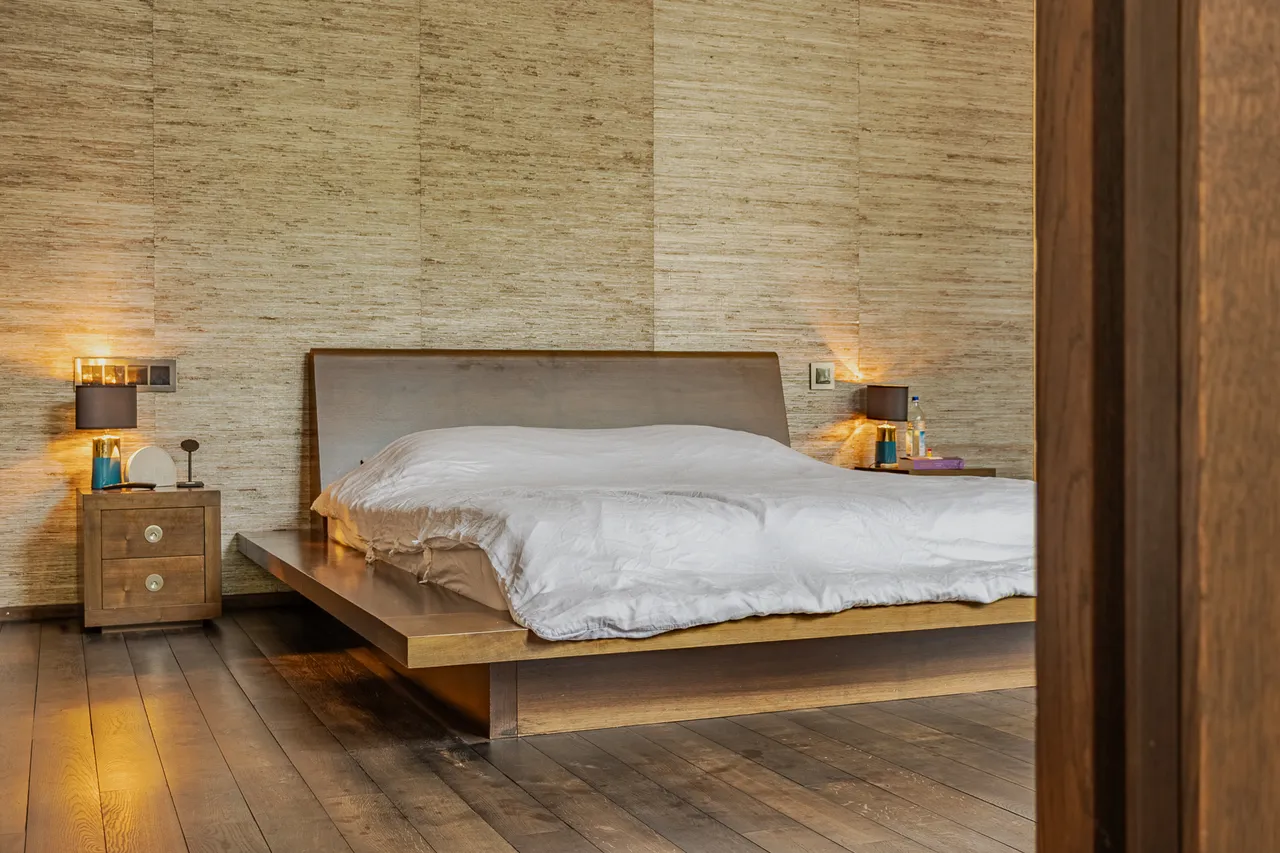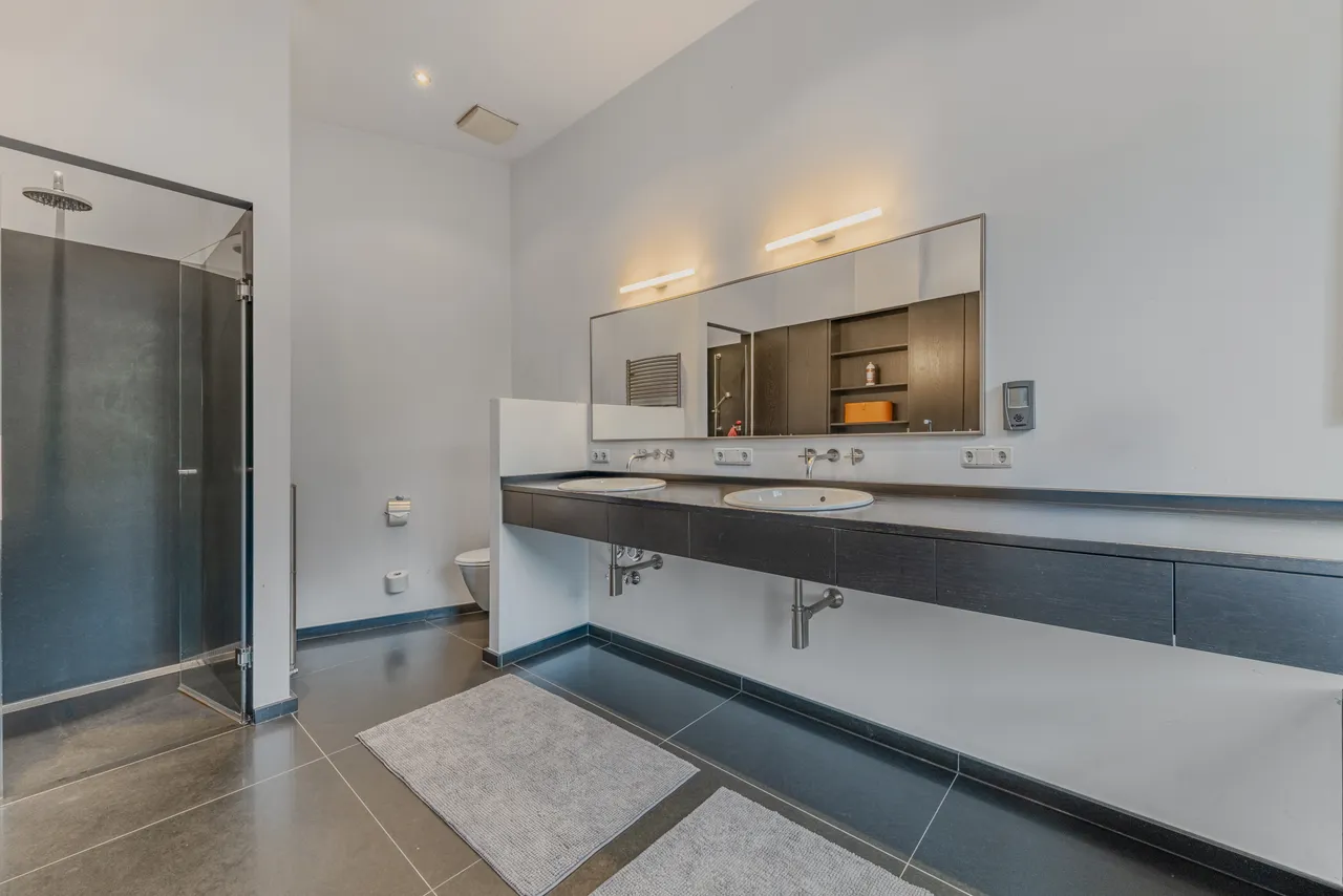 Viel Privatspähre bietet das Masterschlafzimmer mit offenem Badezimmer das keine Wünsche offen lässt und mit eleganter Raumgestaltung überzeugt. Gäste finden genug Raum im abgetrennten Gästebereich mit Schlafzimmer und Duschbad.