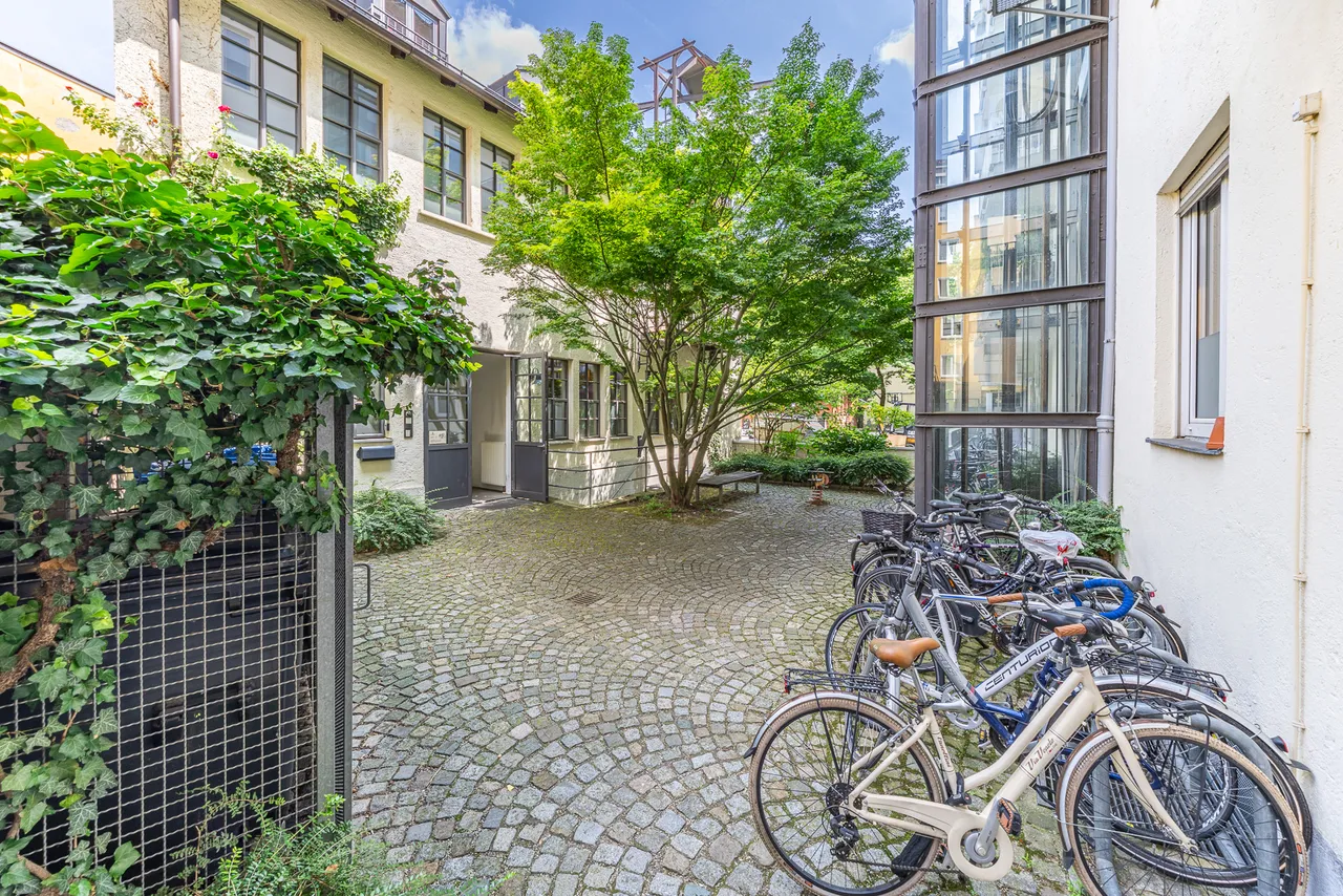 Wunderbar gelegene Loft Wohnung mit großer Terrasse im Innenhof der Buttermelcherstaße, im Herzen vom Glockenbachviertel.