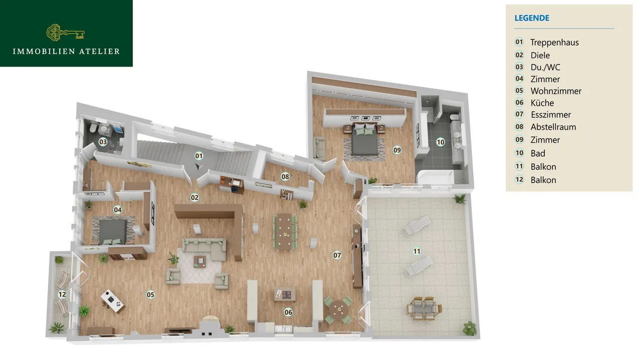 Ein Highlight der Wohnung ist die ca. 60m² große Terrasse die in dieser Lage sicher fast einmalig ist und viele Sonnenstunden bietet.