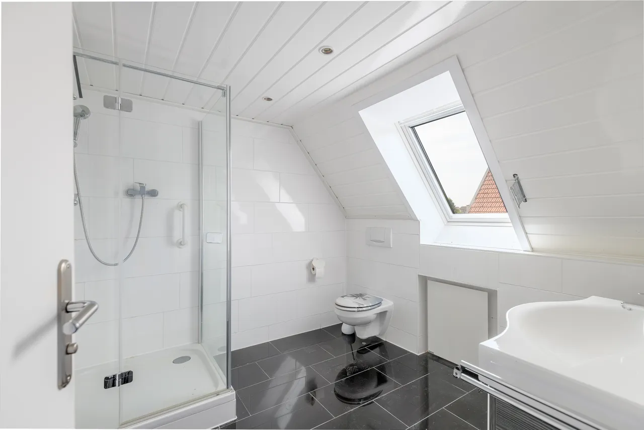 Im Obergeschoss erwarten Sie ein modernes Duschbad, ein großzügiges Schlafzimmer und ein weiteres Zimmer, das sich perfekt als Kinder-, Gäste- oder Ankleidezimmer eignet.