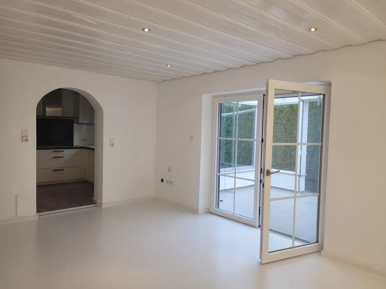 Schon beim Eintreten empfängt Sie eine freundliche, lichtdurchflutete Atmosphäre. Die Kombination aus weißen Böden, hellen Wänden und klaren Linien schafft ein modernes, frisches Raumgefühl.