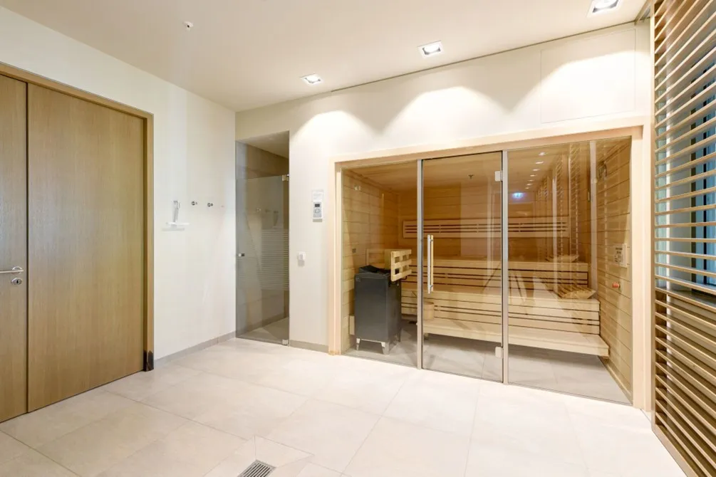 Ein weiteres Highlight der Wohnung: Sie haben Zugang zum luxuriösen Spa, der sich im ersten Stock des Seven Tower befindet. Hier sind verschieden Sauna Suites die man völlig privat nutzen kann sowie ein umfassender Gym untergebracht.