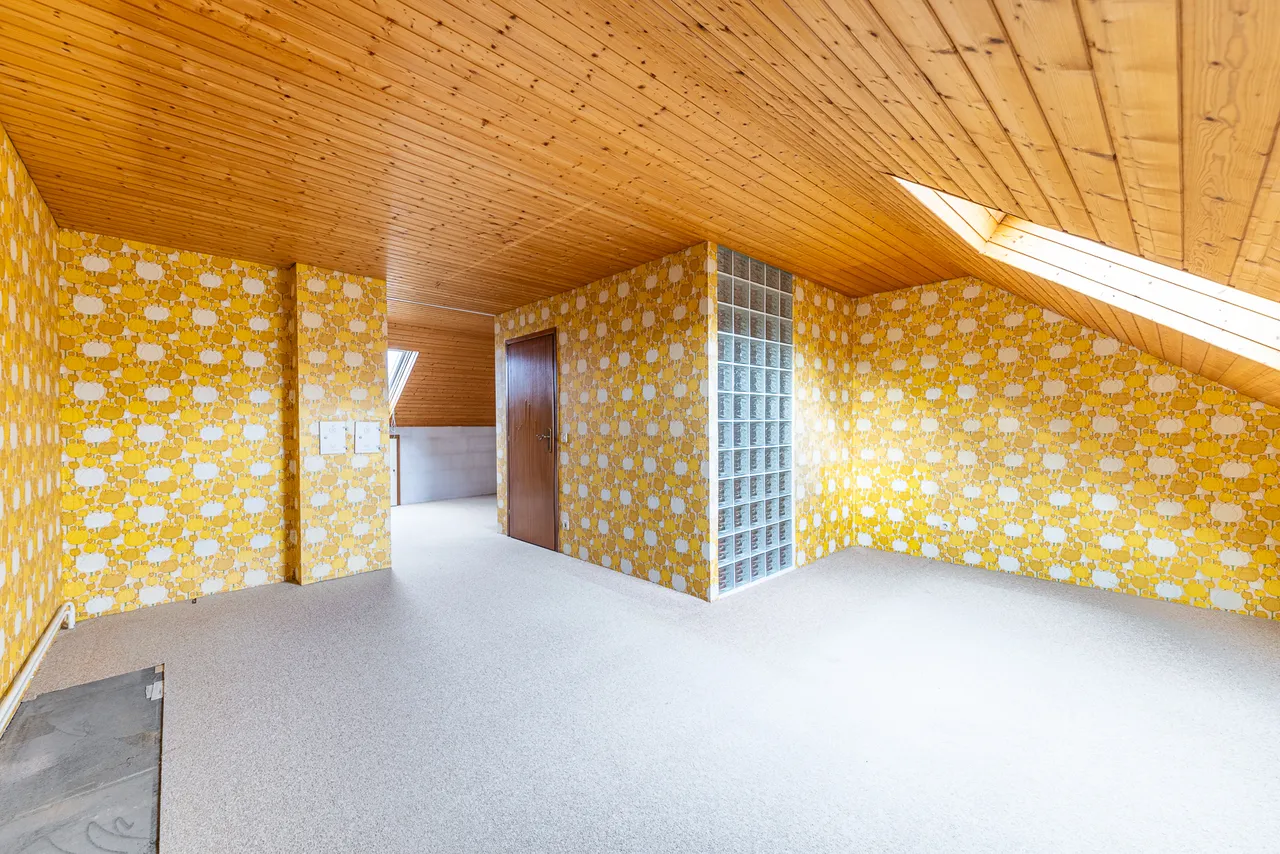 Das 29 m² große Loft ist ein echtes Highlight: ideal als jugendliches Refugium, großzügiges Homeoffice oder stilvolles Gästezimmer. Ein angrenzender Ankleideraum mit Dachfenster bietet zusätzlichen Stauraum – clever und praktisch.