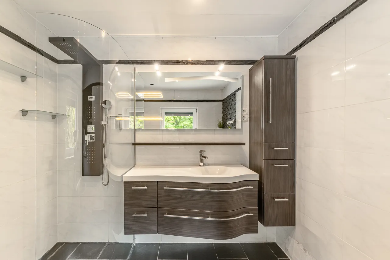 Das Obergeschoss besticht durch seinen optimalen Schnitt. Hier finden Sie eine ideale Raumaufteilung und viel Platz für individuelle Gestaltungsmöglichkeiten. Hier befinden sich zwei Schlafzimmer und eine praktische separate Ankleide, die zusätzlichen Stauraum und Komfort bietet. Ein weiteres Highlight ist die Richtung Garten, beheizte und neu gestaltete Dachterrasse / WIntergarten. Hier können Sie auch an nicht so schönen Tage die Helligkeit und den Blick in Ihren uneinsehbaren Garten geniessen. Das Bad im Obergeschoss bietet zusätzlichen Luxus und Komfort.